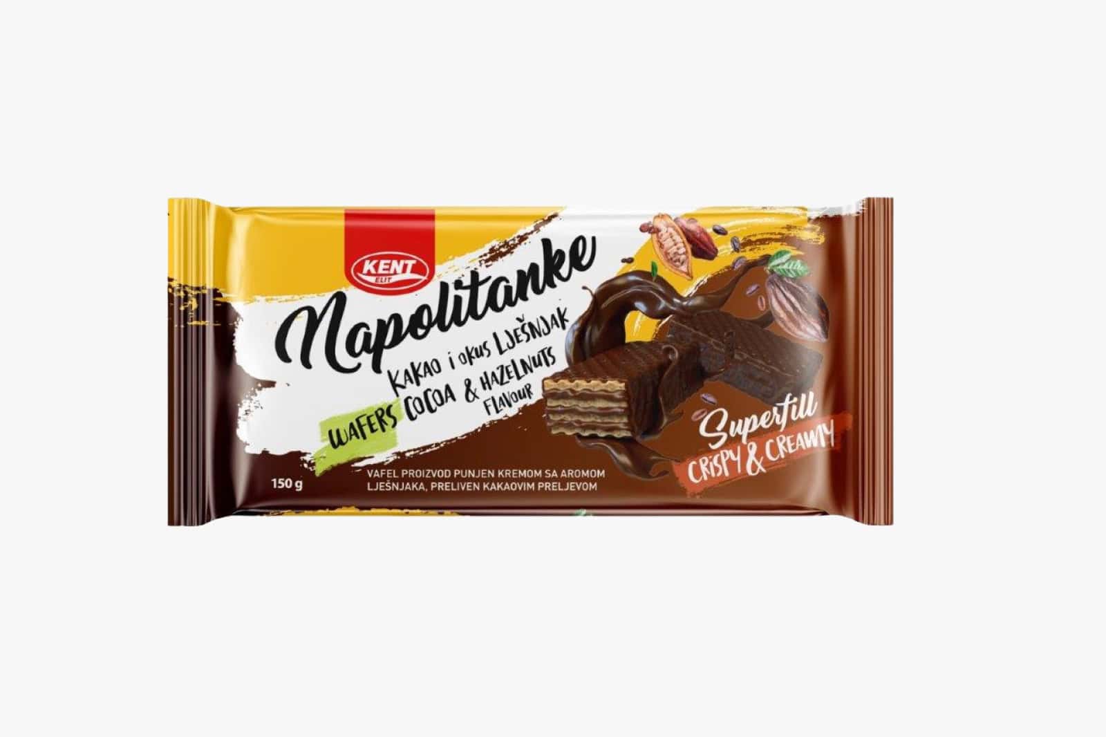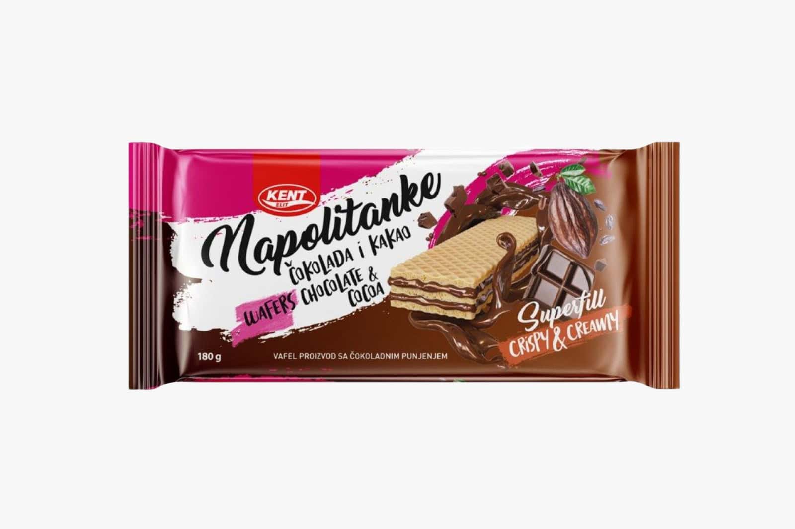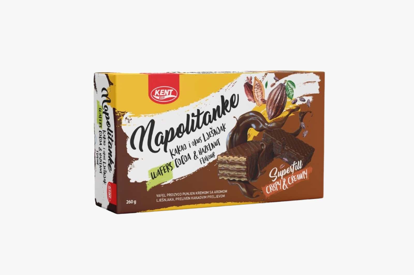 Kent napolitanke 180 g su naši noviteti, ukus zadovoljstva koji će vas iznenaditi, „Maziti“ vaša čula i čini dio odrastanja mnogih generacija.